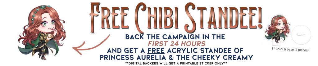 BACK THE CAMPAIGN in the first 24 Hours (physical tier) and get an adorable Princess Aurelia and the Cheeky Creamy standee FREEE!
